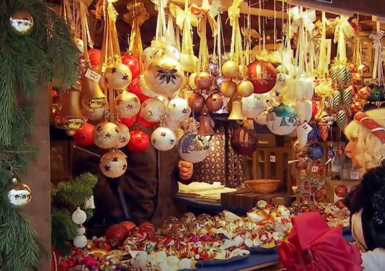 أضواء عيد الميلاد الرائعة وأكشاك الأسواق التي تقدم الحلويات والهدايا اليدوية.