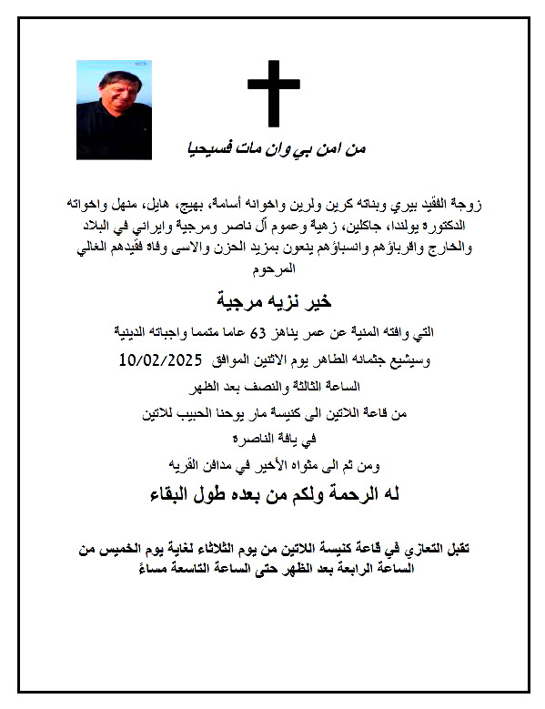 يافة الناصرة: خير نزيه مرجية في ذمة الله
