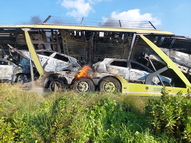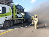 اندلعت بعد عصر اليوم الأربعاء، النيران داخل شاحنة تقل 11 مركبة على شارع 6 باتجاه الجنوب، الأمر الذي أسفر عن احتراق ثماني مركبات بشكل كامل، بالإضافة إلى الأضرار الجسيمة التي لحقت بالمركبات الأخرى. ومن جهتها وصلت العديد من طواقم الإطفاء والإنقاذ من محطتي الخضيرة والعفولة إلى المكان، وعملت على إخماد النيران التي انتشرت بسرعة فائقة في المكان.