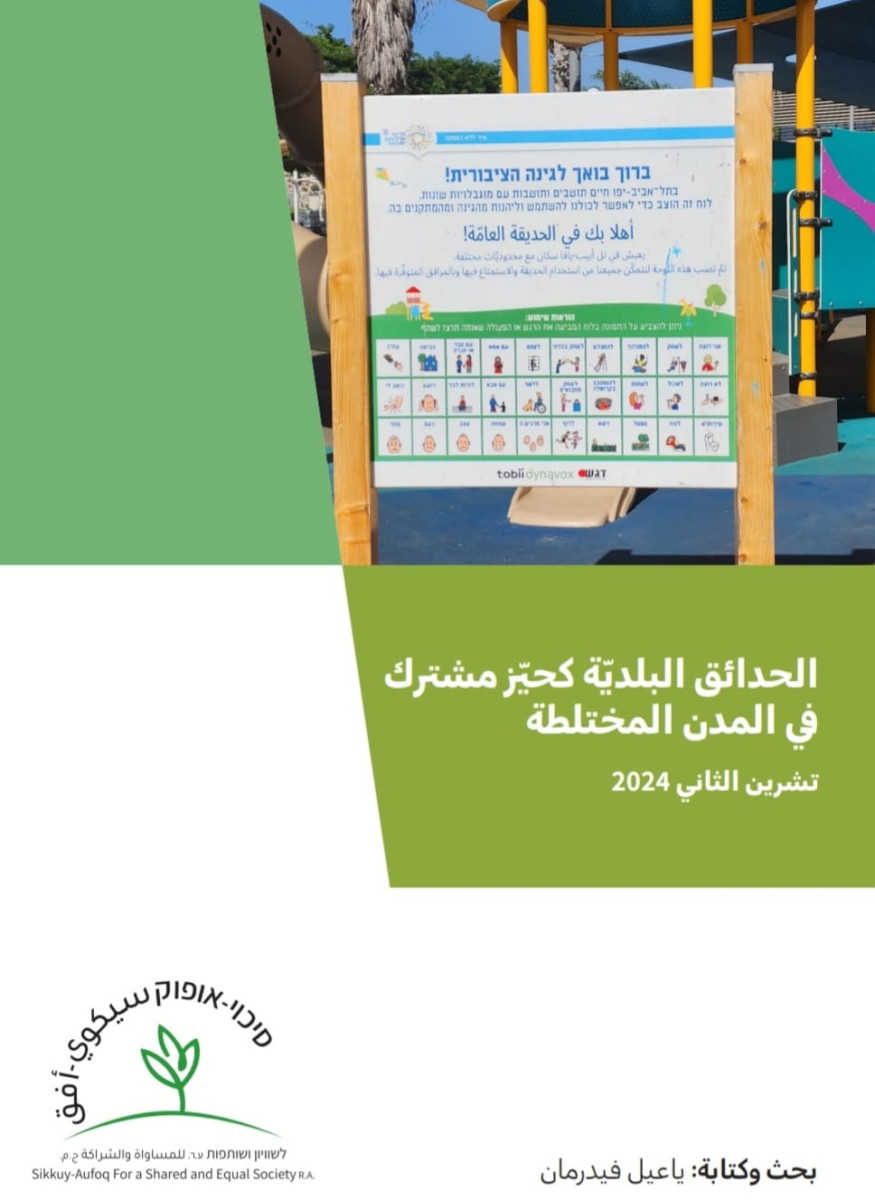 كشفت جمعية سيكوي-أفق في دراسة جديدة بعنوان "الحدائق البلدية كحيز مشترك في المدن المختلطة" عن غياب واضح للتمثيل العربي في الحدائق والمتنزهات العامة في البلدات المختلطة، مما يثير مشاعر الاغتراب والنفور لدى الزوار والسكان العرب.شملت الدراسة 17 متنزهًا في تسع مدن مختلطة (تل أبيب-يافا، حيفا، عكا، اللد، الرملة، نوف هجليل، معالوت ترشيحا، كرميئيل وبئر السبع)، وهدفت إلى تطوير حلول لتعزيز مساحات عامة آمنة وعادلة ومشتركة. ركز البحث على ثلاثة مكونات أساسية: التمثيل، النشاط، والإدارة.