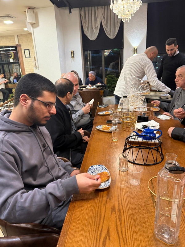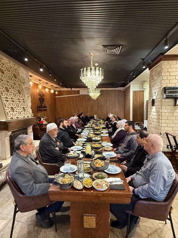 وفي ختام الشهر الفضيل، قام السيد توفيق حاج عوض بتنظيم مائدة إفطار في مطعم "الجاردن" لمربي ومربيات أكاديمية نور البيان، بالإضافة إلى مجموعة من النساء المشاركات في دورات التحفيظ، حيث تمت دعوتهم إلى مائدة إفطار رمضانية جمعت نخبة من الشخصيات الفاعلة، من بينهم الشيخ رائد صلاح، السيد محمد صالح إغبارية – مدير عام المركز الجماهيري، والأخت أندلس إغبارية – مديرة قسم الوالدية والأسرة بالمركز الجماهيري.
