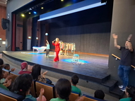وحسب البيان: "من ثم تم استقبال طلاب المدرسة الابتدائية أ والطاقم التربوي والتدريسي وكافة طلاب المدرسة في العرض الثاني للمسرحية وسط انفعال رائع لجمهور الهدف ابناء المدرسة، مع تقديم كبير الشكر للمربي محمد عسلي على تعاونه مع القصر الثقافي لانجاح الفعالية. من جهته فقد اعرب المحامي فراس احمد بدحي عن فرحته بسعادة الطلاب وتعرفهم على القصر الثقافي، مؤكدا ضرورة تعزيز العمل الفني الثقافي بين اروقة المدارس والمؤسسات التربوية والعمل اللا منهجي المدروس نحو الاصغاء لرغبات الطلاب وابداعاتهم".