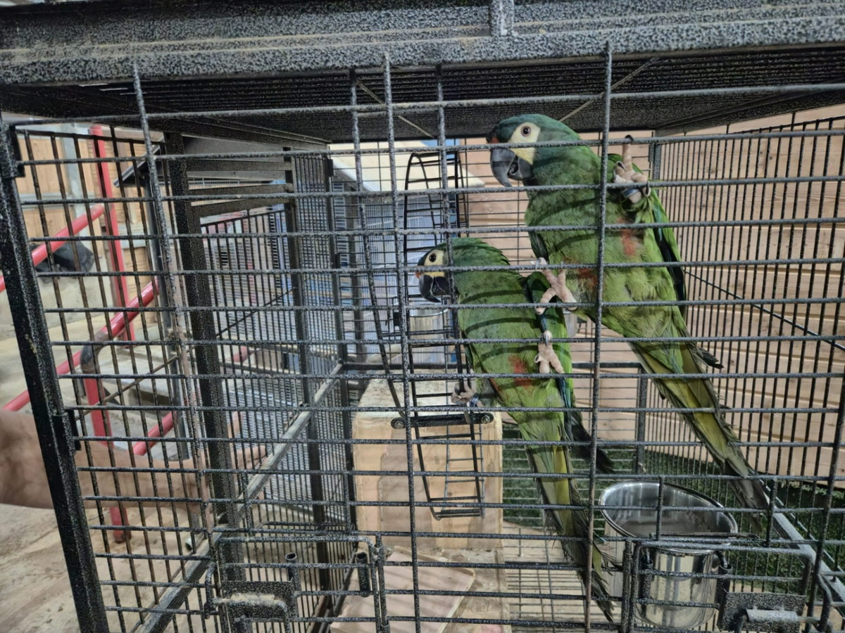 قردان أخضران، و4 ببغاوات متقشرة، وببغاوان أركانا، وقنف واحد، وسلحفاة .