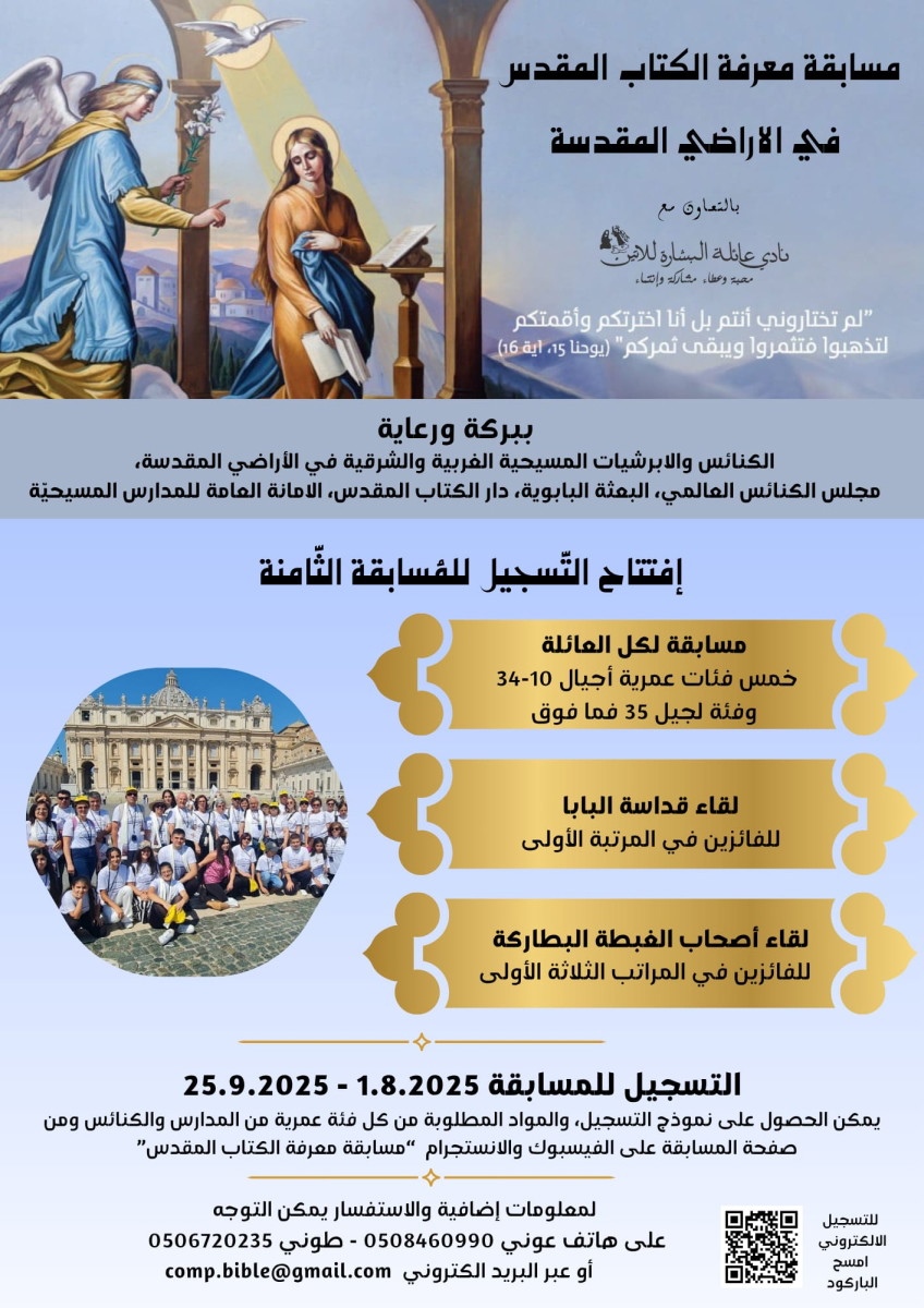 افتتاح التسجيل للمسابقة الثامنة لمعرفة الكتاب المقدس في الأراضي المقدسة