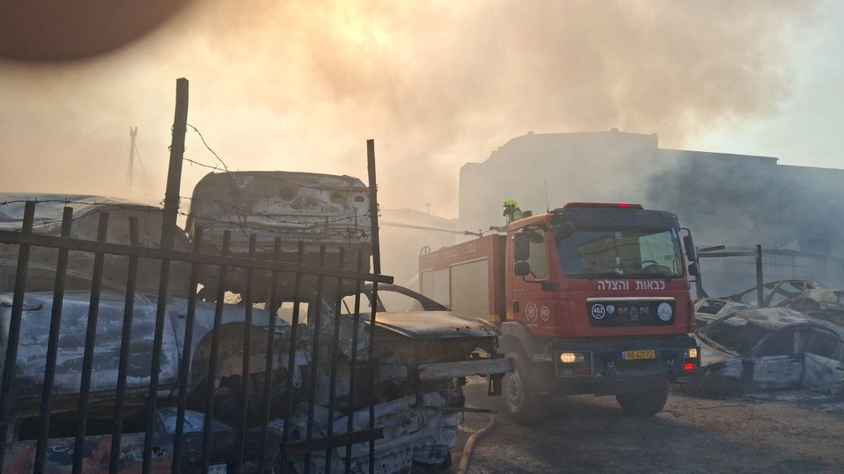 حريق ضخم في محل خردة في سخنين.. احتراق 200 سيارة