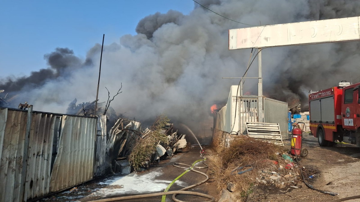 حريق في محل للخردة والسيارات في مدينة عرابة