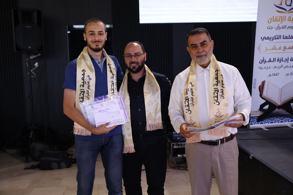 وفي ختام الليلة، علت وجوه المجازين فرحةُ التتويج، وقد كُرّم الأوائل من المجازات والأوائل من المجازين بجوائز مادّيّة، ليتبع ذلك تكريم بقية المجازين والمجازات بالإجازة في تلاوة القرآن، ليبقى الختام مسكًا تعبق به ذاكرة كل من حضر، وتظلّ جمعية الإتقان منارةً مضيئةً في خدمة كتاب الله وأهله.