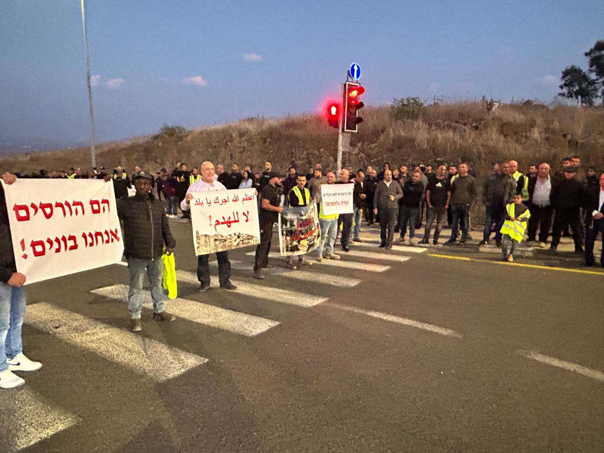 طوبا الزنغرية: وقفة احتجاجية وإغلاق مفترق روش بينا بعد هدم منزل في القرية