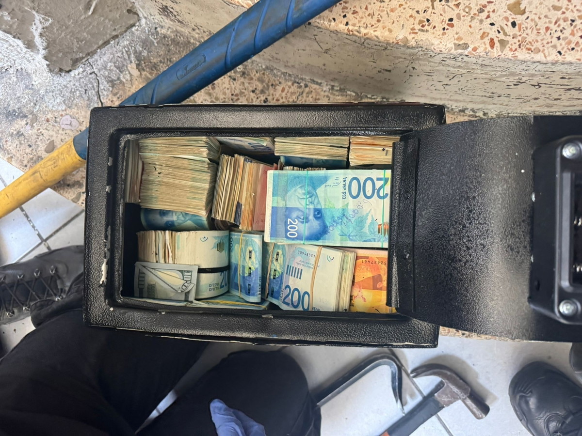 وخلال مداهمة منزله، حاول المشتبه الهرب عبر سطح المبنى لكنه أوقف بعد مطاردة، وضُبطت بحوزته حقيبة فيها نحو 960 ألف شيكل نقدًا، أكثر من 30 ألف دولار، 3 آلاف يورو، ومجوهرات تقدَّر قيمتها بـ200 ألف شيكل يُشتبه بأنها مسروقة.