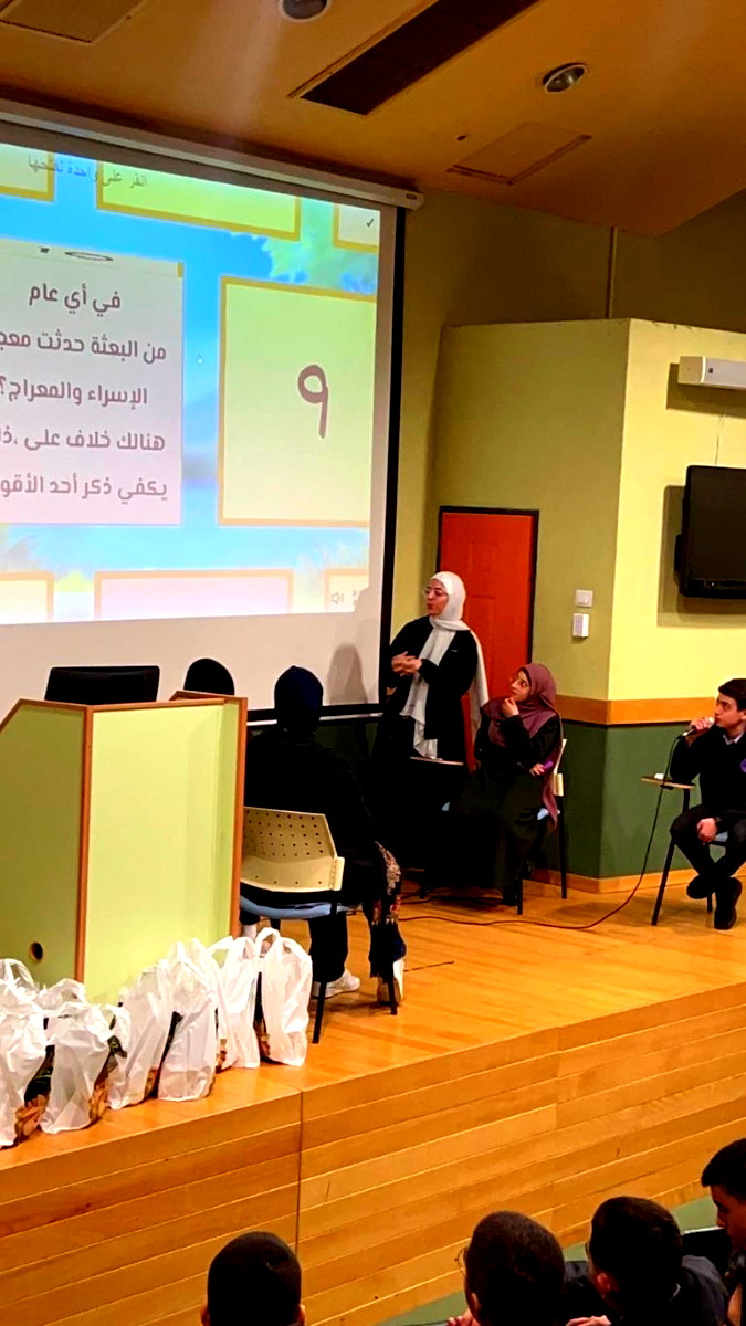 كما أجرى مجلس طلاب المدرسة الأهلية مسابقة حول الإسراء والمعراج هذا الأسبوع بين الصفوف العاشرة والحادية عشر، واشترك في المسابقة إثني عشرة صف من صفوف المدرسة. وقد تكللت المسابقة بأجواء من الحماسة والتفاعل من قِبل الطلاب في كلتا مرحلتيها.