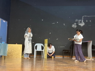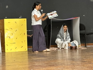 قدم طلاب الصف السادس ب عرضا مسرحيا حول قصة الحطاب نالت إعجاب الحضور ، وأيضا قامت الطالبتان خولة عبد الحليم وطيبة مراد من الصف السادس ج بعرض مناظرة بين الفصحى والعامية، بعدها ألقت الطالبة غزل طه قصيدة فكر بغيرك لمحمود درويش ، لقد تولى عرافة الاحتفال الطالبة آية زيدان ، ومن ثم التقى الأدباء بالطلاب من خلال عرض مسيرتهم الأدبية ومؤلفاتهم وتوصياتهم للطلاب من أجل التمسك باللغة العربية وحفظها وقدموا إجابات حول أسئلة واستفسارات الطلاب.