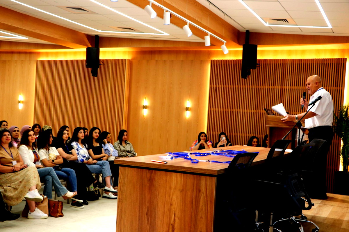 وتابع البيان: "بعدها دعا عريفا اليوم الدراسي البروفيسور فادية ناصر أبو الهيجاء، عميدة الكلّية، إلى المنصّة لتلقي الكلمة الافتتاحية نيابة عن إدارة الكلّية، بحيث شددت من خلالها على الأهمية الكبيرة للغة الإنجليزية، التي تعتبر لغة التواصل الأولى عالميًا في الاقتصاد والعلوم والتكنولوجيا ومختلف المجالات. وأشارت بروفيسور فادية في كلمتها التي قدّمتها باللغة الإنجليزية إلى أنّ: "الطلاقة في اللغة الإنجليزية ليست مجرد مهارة؛ بل إنها بوابة إلى عالم من الاحتمالات والفرص، ومن خلال تمكين طلابنا من إتقان مهارات اللغة الإنجليزية بطلاقة، فإننا نجهزهم للوصول إلى العواصم الفكرية في العالم وإلى المجالات الأعمق للروح الإنسانية". ونوّهت ب. فادية إلى أنّ "اتقان اللغة الإنجليزية والتحدّث فيها بطلاقة لا يعني اهمال لغتنا الأم والتخلي عن جذورنا اللغوية العزيزة.. إننا عندما نفقد لغتنا الأم نخاطر بفقدان روابطنا بوجودنا وطرق تفكيرنا وتراثنا... إنّ كل لغة مفقودة تقلل من التنوع الجميل للتجربة الإنسانية".