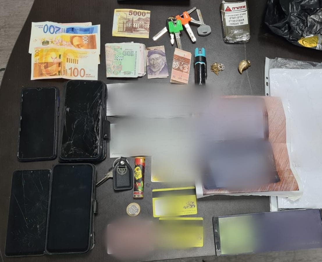 واستمر البيان: "واعتقل المشتبه (49 عامًا) من الضفة واحيل الى المركز. واثناء تفتيشه عثر على 4 هواتف، ودفتر "شيكات"، وصورة لبطاقة هوية، وبطاقة جندي في الجيش الاسرائيلي، ورذاذ فلفل، ومبلغ مالي". حسب البيان