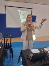 أمّا السّيّدة فتحيّة خطيب، "أمّ مبارك" مركّزة الأنشطة الثّقافيّة والأدبيّة فقد ألقت كلمة رقيقة باسْم المركز الجماهيريّ، دعت فيها الأدباء إلى مزيد من تكثيف فاعليّتهم، فقالت: "نعاني من الويلات الاجتماعيّة والعنف المستشري الّذي يعصف بمجتمعنا ونسيجه وتكافله، ولا ردّ على هذه الحالة البائسة إلّا بتكثير الفعاليّات الثّقافيّة والفنّيّة الّتي قد تجذب الشّبّان والفتيان والطّلّاب وتصرفهم عن السّلوكيّات غير السّويّة".