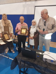 وفي جلسة التّكريم دعا صاحبا فكرة التّكريم: الكاتبة أسمهان خلايلة نائب الأمين العامّ والشّاعر علي هيبي النّاطق الرّسميّ ستّة من الأعضاء الّذين اجتازوا سنّ الثّمانين لتكريمهم وتقديرهم على تفانيهم في خدمة الاتّحاد ودعوتهم لتسلّم الدّروع، وهم: د. بطرس دلّة رئيس الاتّحاد وقد تسلّم درعه خالد خليل، د. محمّد حبيب الله عضو الإدارة، الكاتب عبد الخالق أسدي رئيس لجنة المراقبة، الكاتب سعيد رابي وقد تسلّم درعه صديقه الأديب يوسف أبو خيط، والكاتب عمر سعدي والكاتب محمّد سعيد ريّان، أعضاء الاتّحاد، وكان هناك تكريم خاصّ لفقيد الاتّحاد والعضو الباقي فيه روحًا ترفرف فوق حناياه، الكاتب عادل أبو الهيجاء، رئيس بلديّة طمرة الأسبق، وقد تسلّم الدّرع ابناه: سلام ولينا وهي عضو في اتّحادنا، وكان لا بدّ من فقرة فنّيّة موسيقيّة قدّمها الفنّانون الواعدون من "معهد المجد" في مجد الكروم، فقدّم سعيد خلايلة وبيسان خلايلة وورد خلايلة معزوفات جماعيّة ومنفردة، لاقت استحسان الحضور كان ذلك قبل التّلخيص القصير الّذي قدّمه الأمين العامّ.