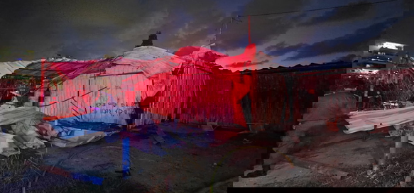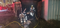 طواقم الاطفاء والانقاذ تعمل على اخماد حربق في مبنى متنقل بعد ان تم تخليص عالقين 2 من داخل المبنى المشتعل، إثر الرشقة الأخيرة من جنوب لبنان على مدينة نهاريا.