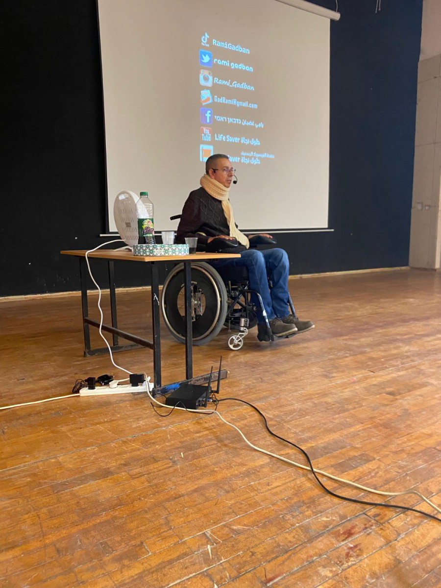 أقيمت يوم أمس الاول فعالية توعوية تحت شعار “الحذر حياة” لجمهور طلاب التواسع في مدرستي ابن سينا الجماهيرية ومدرسة السلام الاعدادية، استهدفت رفع الوعي حول أهمية الالتزام بقواعد السير والسلامة المرورية، وذلك بمشاركة السيد رامي غضبان الذي فقد قدرته الحركية جراء حادث طرق دموي شمل عددا من الضحايا القتلى عام 1998.