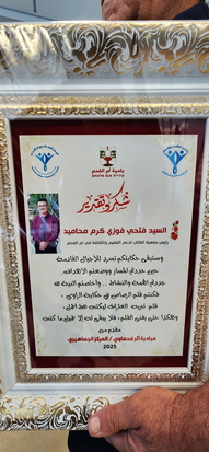 وفي نهاية الزيارة، قدّم وفد المبادرة درعًا تكريميًا لجمعية الكتاب، تقديرًا لجهودها المباركة في دعم الطلبة الجامعيين وتعزيز قيم الخير والعطاء في المجتمع الفحماوي.