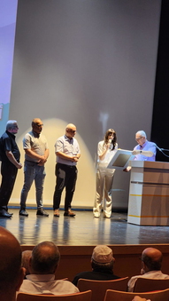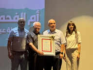 وفي ختام الأمسية، قام كل من المدير العام للمركز الجماهيري والمسرح العربي ام الفحم - السيد محمد صالح إغبارية ومديرة قسم الثقافة المركز الجماهيري - السيدة لبابة صبري، بتقديم درع تقدير ووفاء للباحث المؤرخ الأستاذ وجدي حسن جميل، تقديرًا لجهوده في توثيق ذاكرة المكان وإثراء المشهد الثقافي في أم الفحم.
