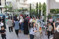 وأردف البيان: "في البداية تحدثت الفنانة ختام هيبي عن اعتزازها وافتخارها بطلابها الذين رافقوها لعدة أشهر، وتمكنوا اليوم من عرض لوحاتهم المميزة للمرة الأولى أمام الكاميرات وأمام الأهالي، وهي لوحات تثلج وتشرح الصدر، باعتبار أن الرسم وسيلة للتعبير يعرفها الطفل في مراحل نموه الأولى، والرسم عبارة عن التعبير عن نفسه وعن آماله وعن حياته خلال الرسم، كما نشاهد ذلك في الرسومات التي استطاع طلابنا من إنجازها وهي معروضة أمامكم اليوم".