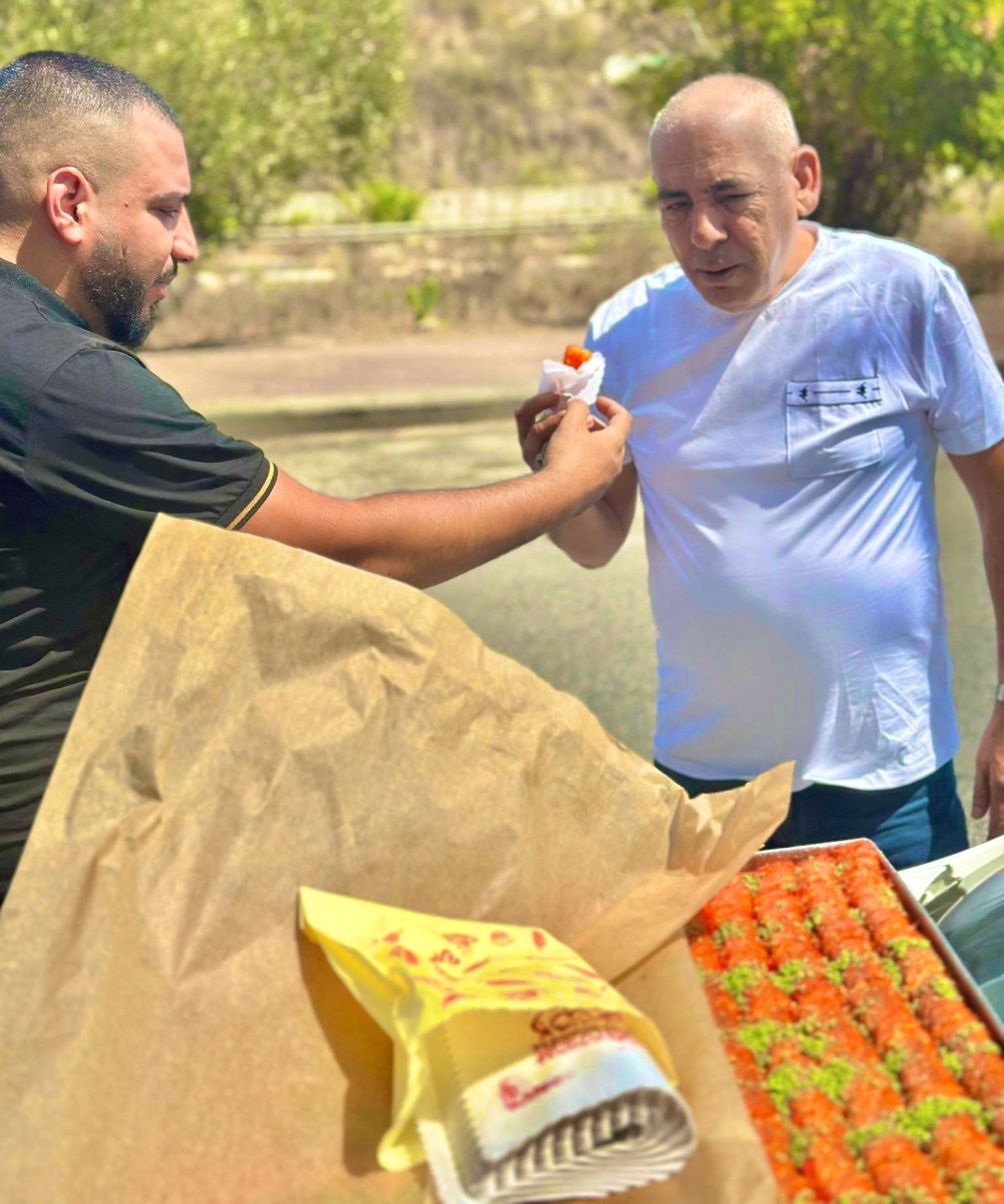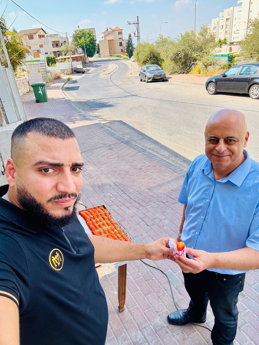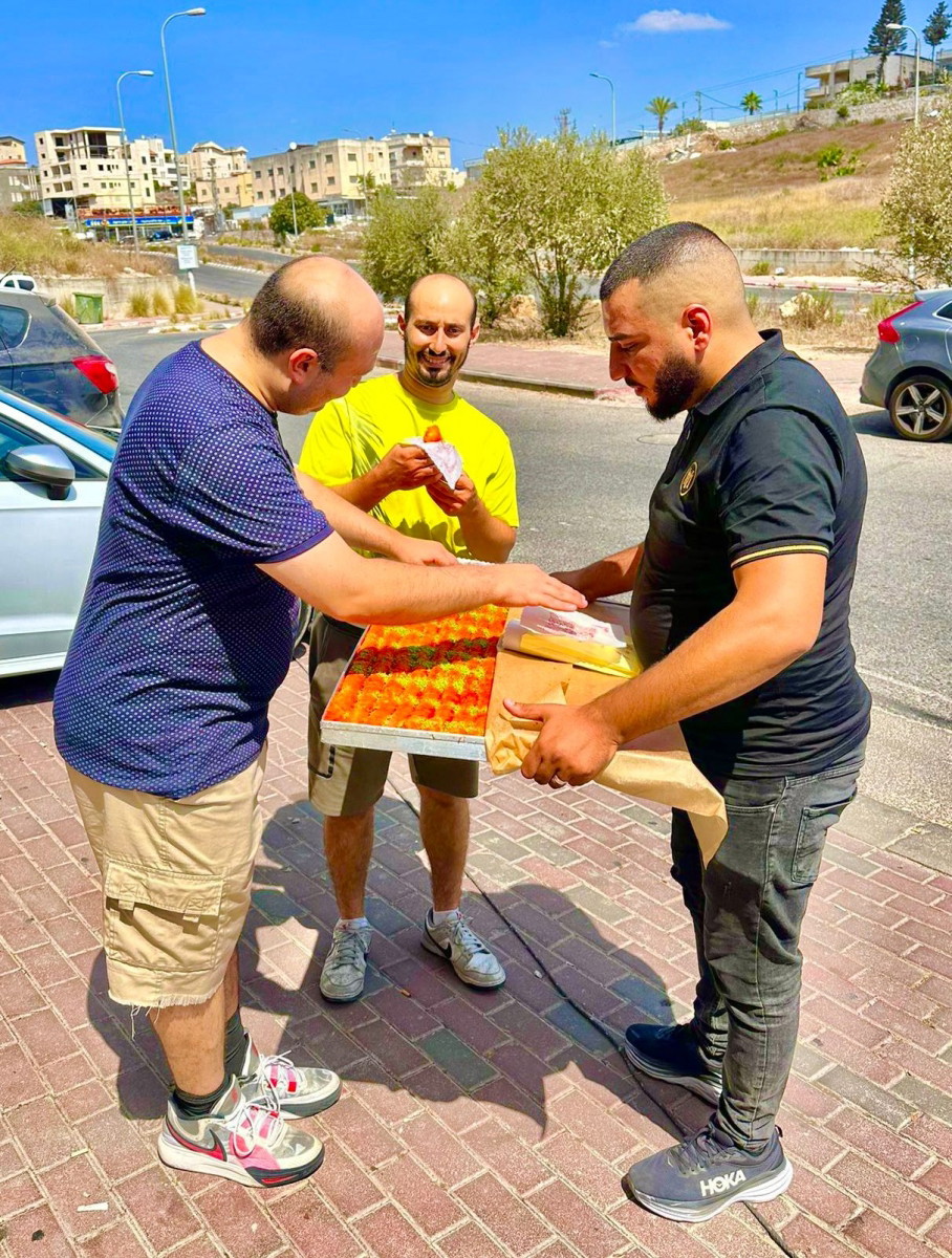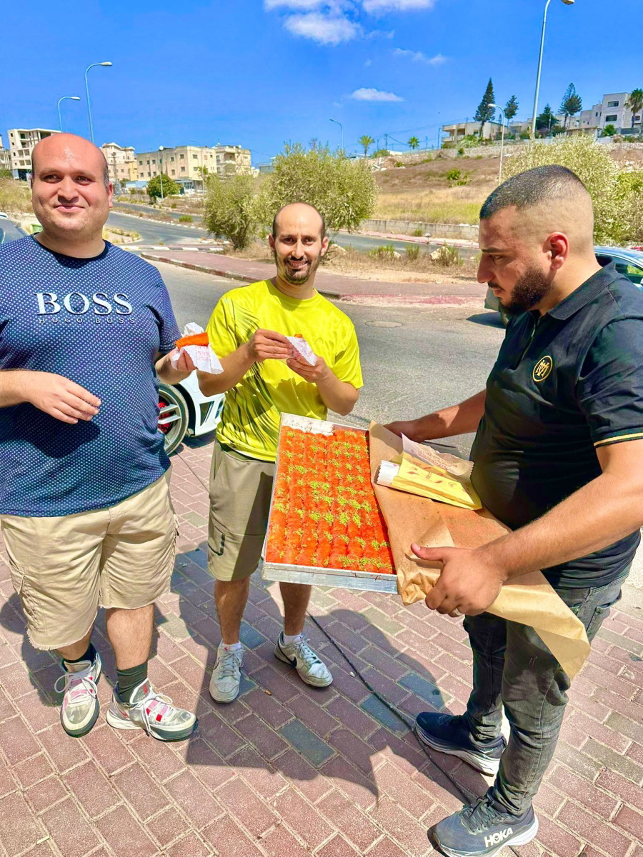 توزيع الحلويات والماء والقهوة على المارين في حي الفاخورة في الناصرة احتفالاً بالمولد النبوي الشريف