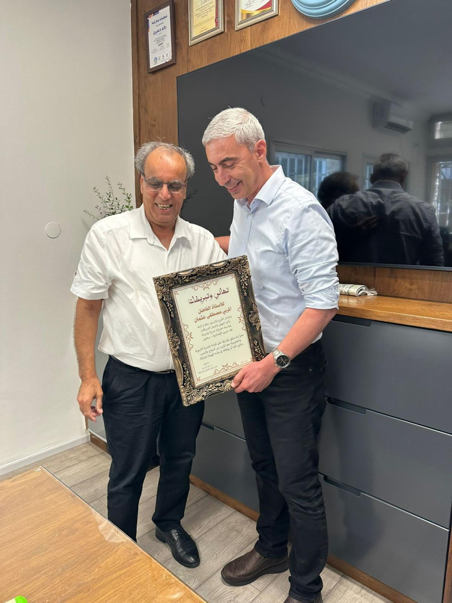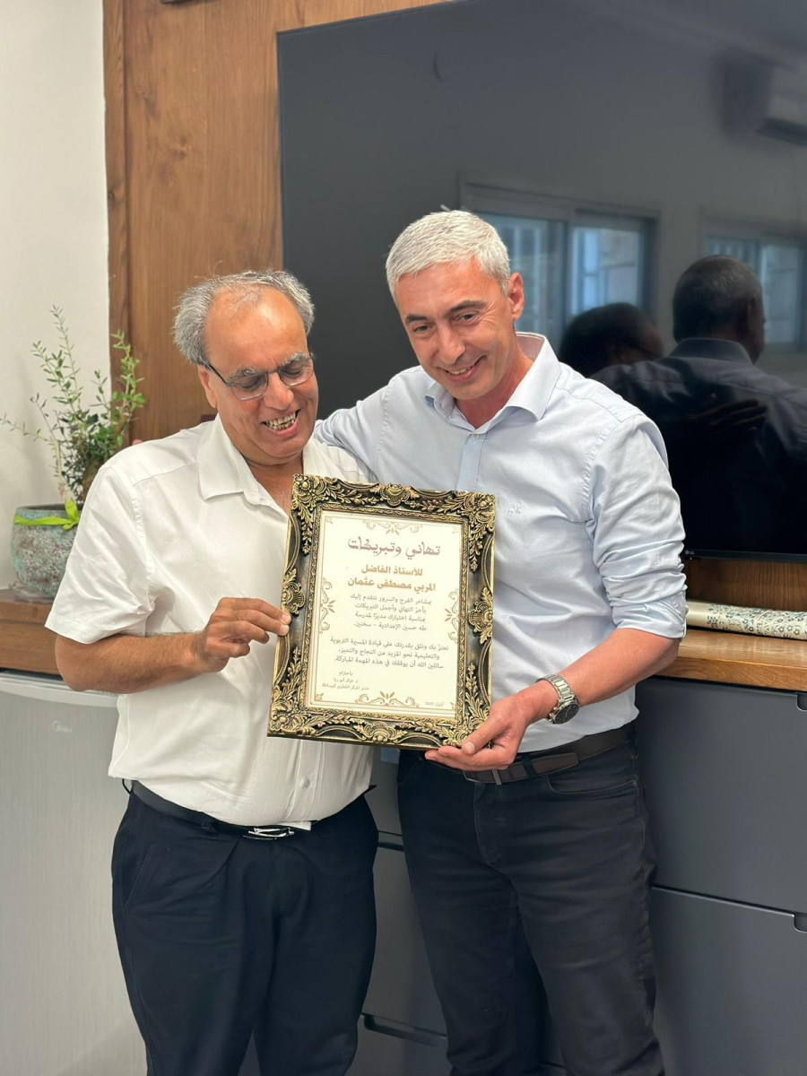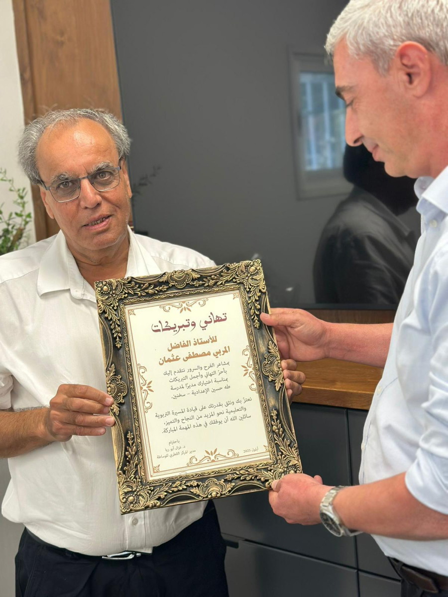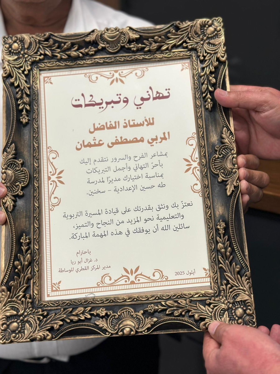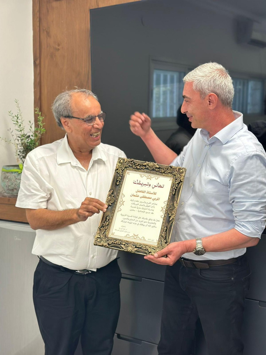 وفي كلمته، أشاد أبو ريا بمسيرة الأستاذ مصطفى عثمان وتجربته الغنية في الحقل التربوي، مؤكدًا أن ما يتمتع به من دراية ورؤية تربوية ومجتمعية سيشكل رافعة لتحقيق الأهداف التعليمية والتربوية المرجوة، قائلاً: “نقيم تجربتك ودرايتك، ورؤيتك التربوية والمجتمعية، لتحقيق الأهداف التعليمية وغرس القيم في نفوس طلابنا.”