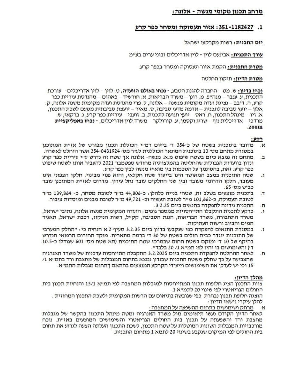 أعلنت بلدية كفرقرع أن اللجنة اللوائية للتخطيط والبناء صادقت في جلستها المنعقدة بتاريخ 01/09/2025 على إيداع خريطة المنطقة الصناعية الواقعة غربي مدخل المدينة بمحاذاة شارع 65، وذلك بشروط.وتعتبر هذه المصادقة بشرى كبيرة لأهالي كفرقرع الذين عانوا لسنوات طويلة من غياب منطقة صناعية تخدم مصالحهم التجارية والصناعية.الخريطة المصادق عليها تشمل 354 دونمًا من أراضي سلطة أراضي إسرائيل التي جرى ضمها إلى مسطح نفوذ بلدية كفرقرع بموافقة وزير الداخلية، وتشمل: