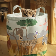 تُقدم مجموعة SANDLÖPARE تشكيلة واسعة من المنتجات لتصميم غرف الأطفال، بما في ذلك أغطية أسرّة مزخرفة برسومات الحيوانات، صناديق وسلال تخزين على هيئة حيوانات، ملصقات حائط لتزيين الغرفة، مجموعة من الدمى القماشية الطرية على شكل قرود وزرافة ونمور، سجاد بأشكال حيوانات، مناشف استحمام على هيئة حيوانات، والعديد من الإكسسوارات والمنتجات التي تُدخل أجواء الطبيعة وحيوانات السافانا إلى غرف الأطفال.