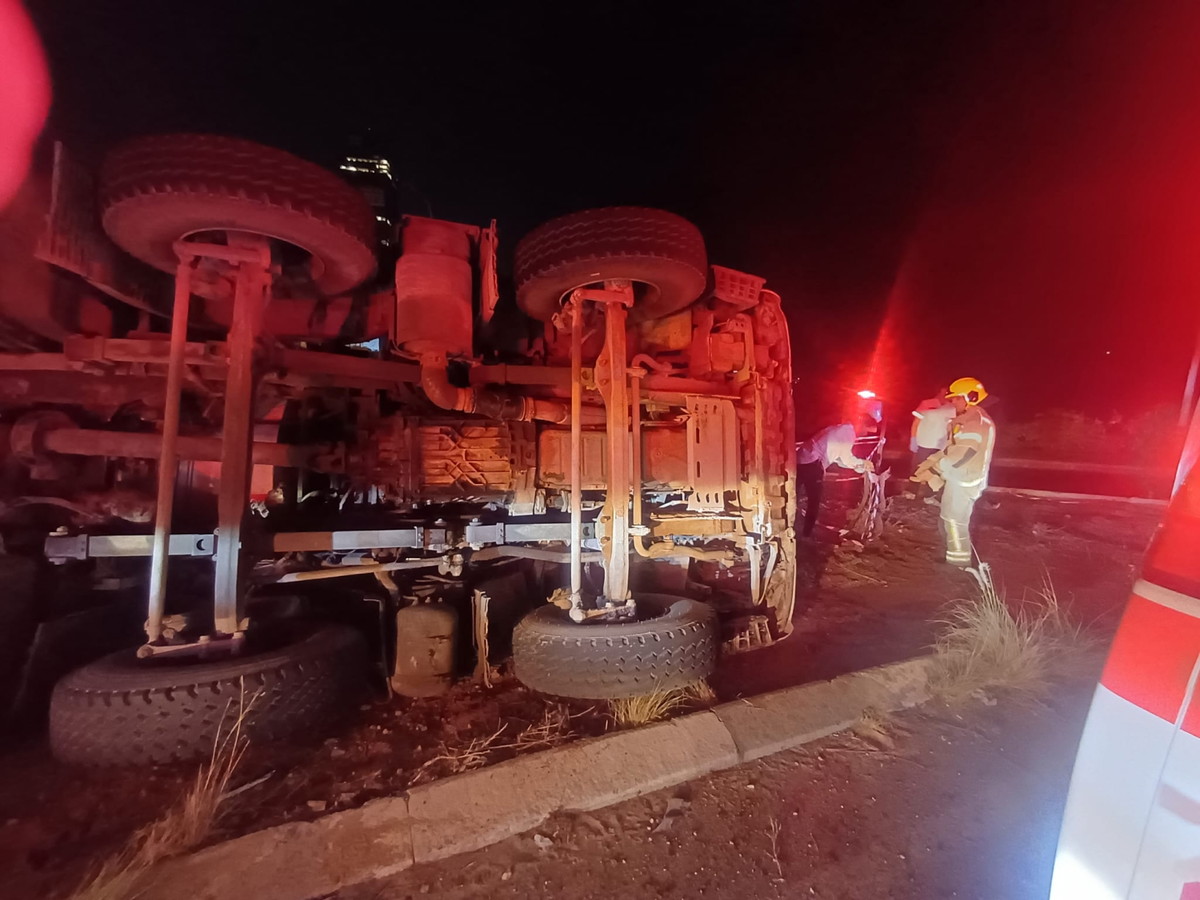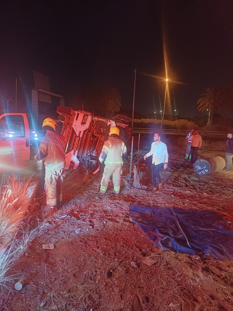 شارع 2: تخليص شخص عالق جراء انقلاب خلاط باطون قرب هرتسليا
