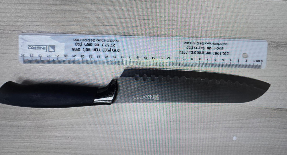مرفق: توثيق من الحادثة، والسكين التي كانت بحوزة المتهم والتي لوّح بها نحو الكاميرا.الى هنا نص البيان...