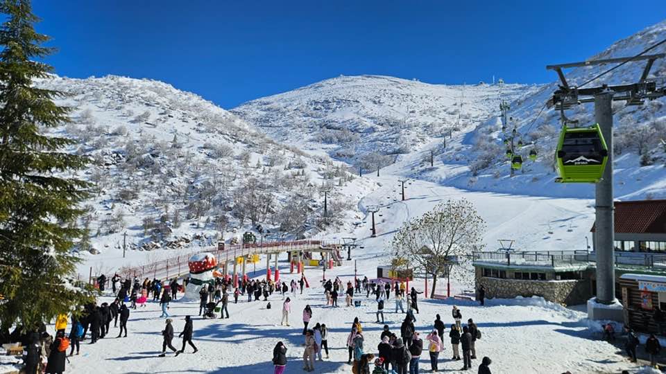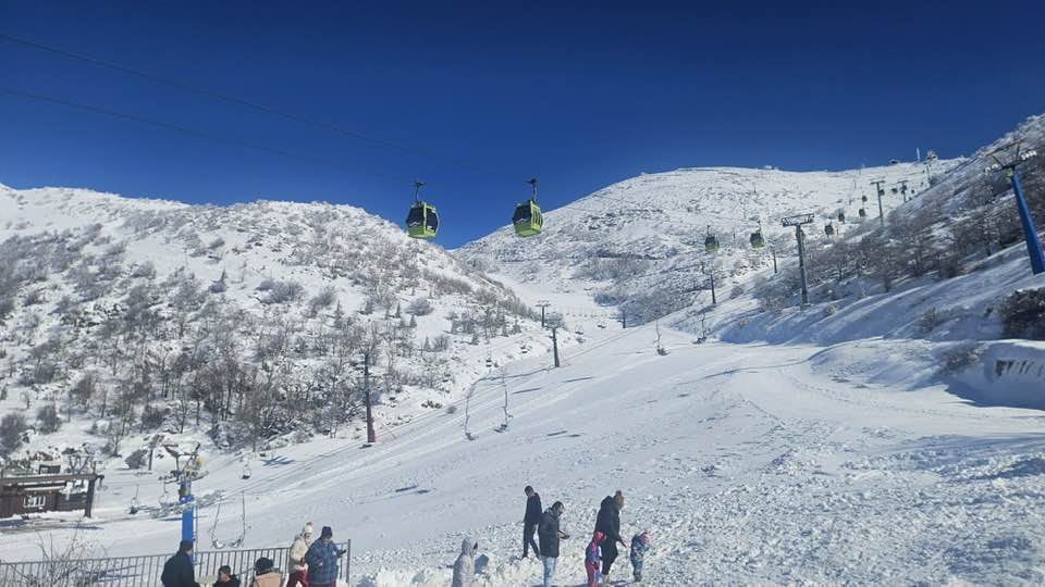 شاهدوا - أجواء اوروبية في جبل الشيخ , الاف العائلات يستمتعون بالثلوج وسط ازدحام شديد