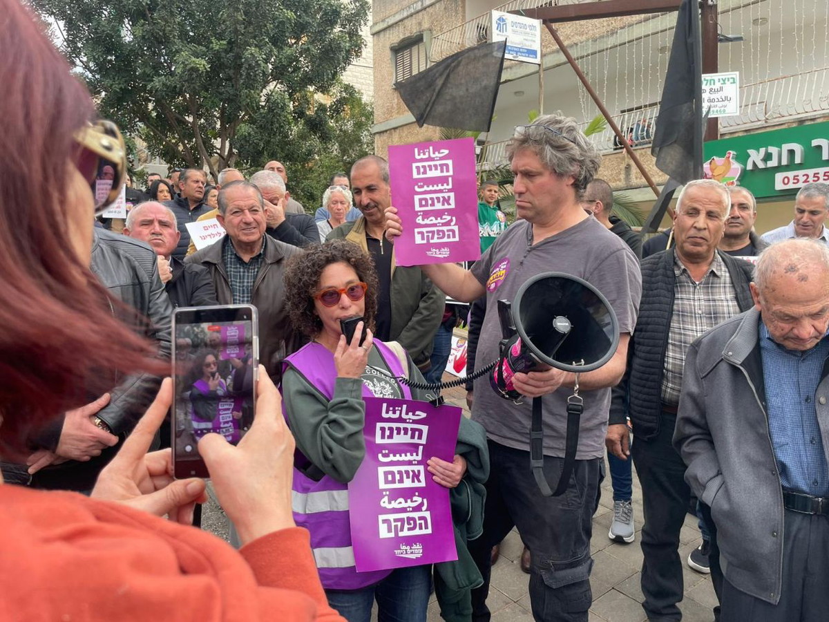 ورُفعت خلال المظاهرة شعارات منددة بالجريمة المنظمة وبسياسة الإهمال الرسمي تجاه ما يجري في المجتمع العربي بجانب صور ضحايا جرائم القتل.
