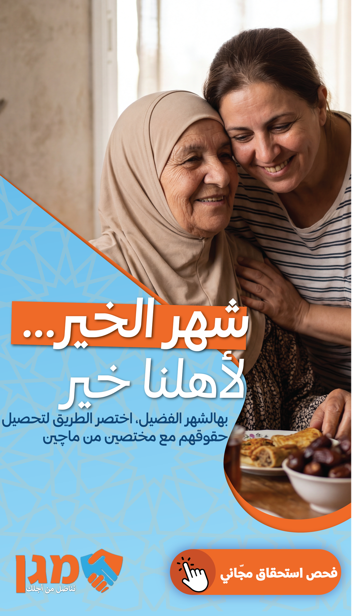 فحصت استحقاق مجاني، ما نجحت؟ لن تدفع شيء!" מגן מוחים – نناضل من اجلك