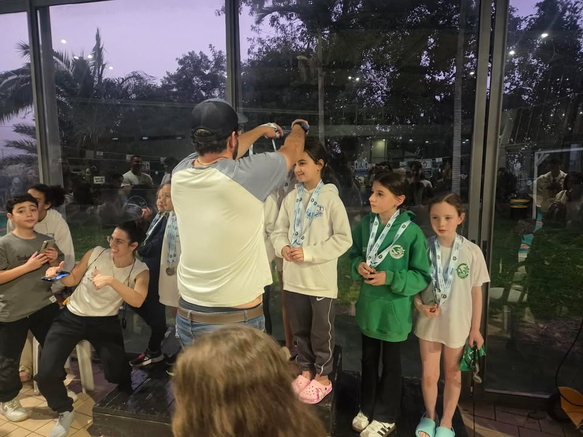 ???? الميدالية الذهبية: المركز الأول في سباق التتابع المتنوع (4×50) للمجموعات، حيث تألقت لنى بأسلوب "سباحة الصدر" (חזה).