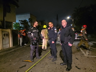 ووصل بيان صادر عن مكتب كايد ظاهر الناطق الرسمي للاعلام العربي في سلطة الإطفاء والإنقاذ جاء فيه: "تعمل 7 طواقم إطفاء وإنقاذ على إخماد حريق والبحث عن عالقين في موقع سقوط شظايا صاروخية".