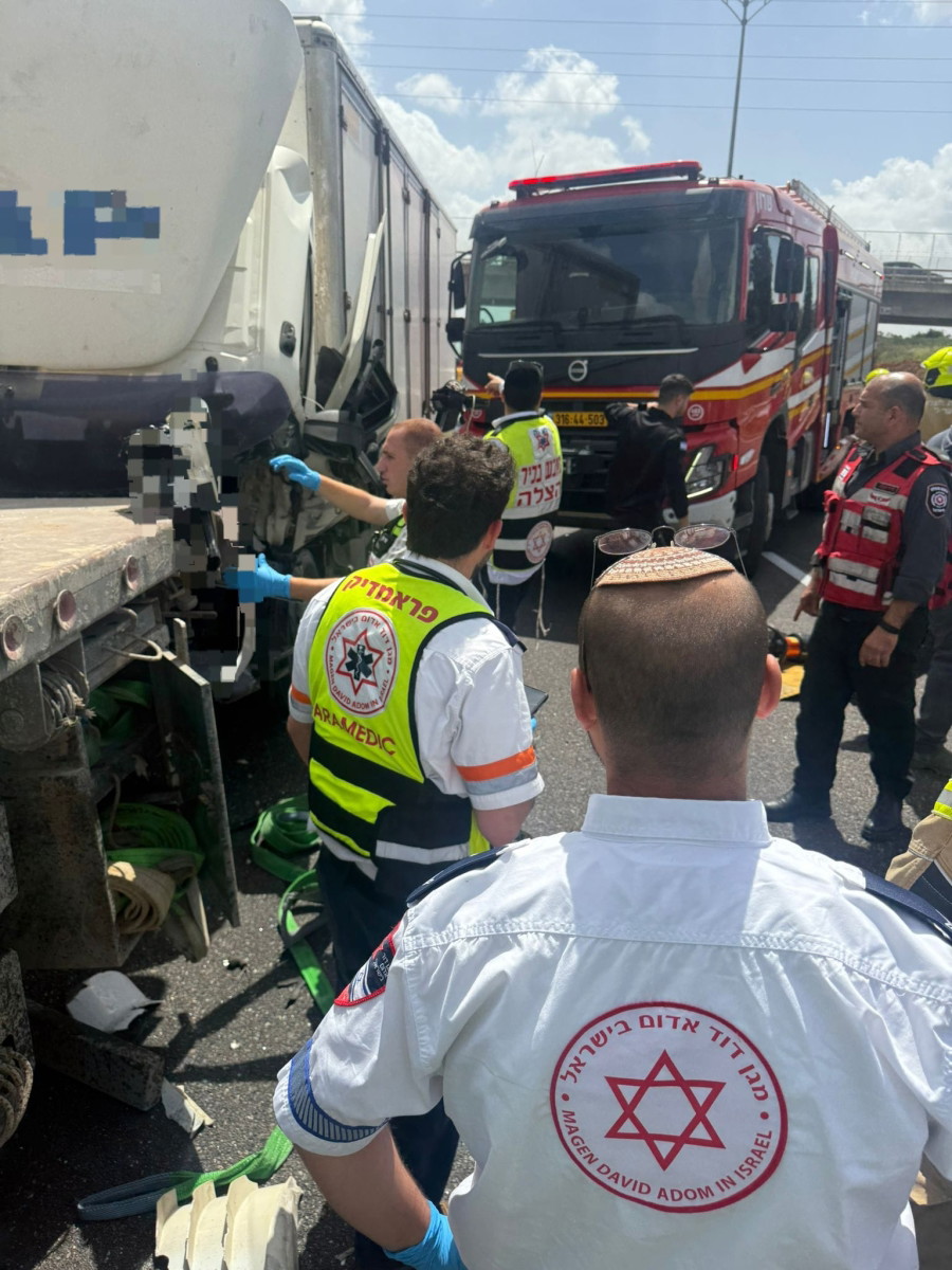 المتحدث باسم نجمة داود الحمراء: في تمام الساعة 12:18، ورد بلاغ على الخط الساخن 101 التابع لنجمة داود الحمراء في منطقة اليركون، يفيد بوقوع حادث سير بين شاحنتين وسيارة خاصة على الطريق السريع رقم 6 بالقرب من تقاطع حوريشيم. وبعد عمليات الإنقاذ، أعلن مسعفو نجمة داود الحمراء وفاة سائق الشاحنة، وهو رجل يبلغ من العمر حوالي 40 عامًا، متأثرًا بإصابات متعددة في أجهزة الجسم. وقال ماتان ماندلبوم، المسعف الطبي الطارئ من وحدة الدراجات النارية التابعة لنجمة داود الحمراء: "هذا حادث سير خطير بين شاحنتين وسيارة خاصة. تعرضت إحدى الشاحنات لأضرار جسيمة في مقدمتها المعدنية. وكان رجل يبلغ من العمر حوالي 40 عامًا محاصرًا داخل الشاحنة، فاقدًا للوعي، بلا نبض ولا يتنفس. وخلال عمليات الإنقاذ التي قام بها رجال الإطفاء، أجرينا فحوصات طبية، لكن إصابته كانت حرجة، ما اضطرنا إلى إعلان وفاته في مكان الحادث. وفي الموقع، تقدم فرق نجمة داود الحمراء العلاج الطبي لإصابة طفيفة ناجمة عن الشاحنة والسيارة."